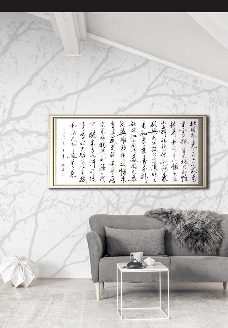 此作品《沁园春·雪》是毛泽东主席的诗词名篇,上阕描写的是乍暖还寒的北国雪景,展现伟大祖国的壮丽山河;下阕是毛主席对祖国山河的壮丽而感叹,抒发了主席伟大的抱负及胸怀。 此幅作品用行书的手法行云流水般地书写出了诗词的那种气势和气魄,书法笔法流畅而不失变化。此幅作品适合挂在企业公司等场所,尤其是会客厅或领导级别的办公室里,不仅提升公司的品位,更能彰显领导者雄伟的报负及胸怀。
