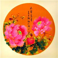 圆形牡丹画