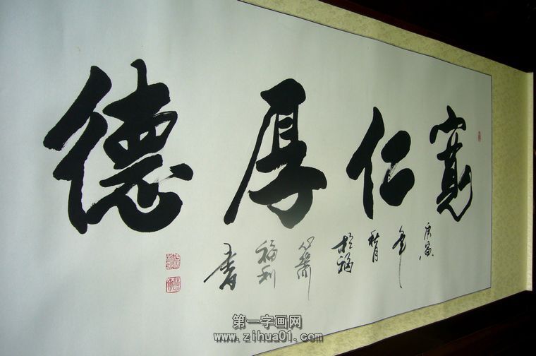 四字书法欣赏——第一字画网的书法宽仁厚德,这幅是山东书法家协会福利老师的书法作品,装裱后长度约在1.8米左右,笔法老练,苍劲有力,具有极强的视觉冲击力,适合挂在家里的客厅或书房欣赏,送长辈或是送领导也是很不错的选择。如果放在画廊出售,福利老师此副书法作品裱完后的标价大约在1000元左右。