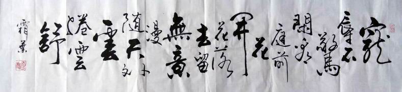 第一字画网的四尺书法作品,这幅四尺书法适合作为总经理办公室字画,宠辱不惊,闲看庭前花开花落,去留无意,漫随天外云卷云舒。作品装裱后尺寸达1.8米,如果放在画廊出售,李正枢老师此幅作品的标价起码在2500元左右。李正枢老师,字霜叶,云南的老书法家,兰亭杯书法大赛的特邀参展嘉宾,擅长行楷,几十年的书法功力,功力深厚。李老师四尺对开的书法在云南的艺术品拍卖行已经是2500元起拍价了,光看字的水准就知道了。