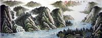 • 产品简介: 挂公司会客室的山水画,刘智东小六尺山水画,适合挂公司会议室、办公室,家里的客厅,画功出色,意境深动的作品。