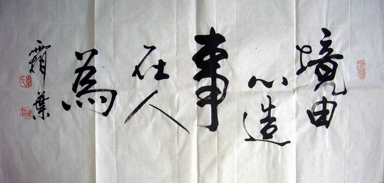 第一字画网的书法作品,是幅适合挂书房的字,也适合挂在会客室,内容为:境由心造、事在人为,这幅书法是李正枢老师的书法作品,装裱后长度约在1.2米左右,作品笔法老练,如果放在画廊出售,李正枢老师此幅书法作品的标价大约在1200元左右。李正枢老师,字霜叶,云南的老书法家,兰亭杯书法大赛的特邀参展嘉宾,擅长行楷,几十年的书法功力,功力深厚。李老师四尺对开的书法在云南的艺术品拍卖行已经是2000元起拍价了,书法的实力不用细说,光看字的水准就知道了。