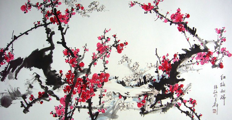 • 产品简介: 红梅国画作品,齐鲁画家韩梅三尺国画梅花作品,已装裱。