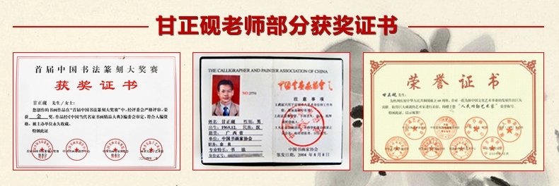 甘正砚,1968年生,继承家学,犹喜翰墨,擅长行书、草书,每日临池楷、行、草等名家字帖,字法飘逸洒脱。现为中国书法家协会广西分会会员、广西书画院专业书法家、中国书画协会书法评审委员、墨宣世家艺术中心签约书法家。他的作品自然流畅,融汇古今,行笔间有一种行云流水的洒脱、古藤老树的苍劲、大江东去的豪气。其作品风格行云流水,博采众长,很有新意。擅长行楷、行书、草书等多种书体,尤以行草见长,其书法作品多次获奖,并受到各界人士的好评。