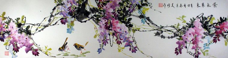 • 产品简介: 六尺对开国画花鸟,美琦老师花鸟作品,已装裱。