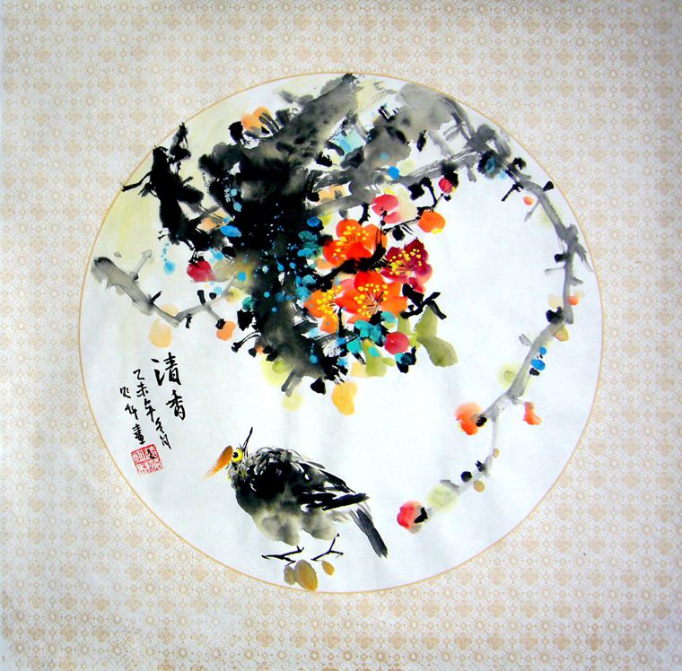 • 产品简介: 三尺斗方花鸟作品,未装裱。