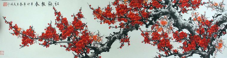 • 产品简介: 六尺对开红梅图,美琦老师六尺对开作品,已装裱。