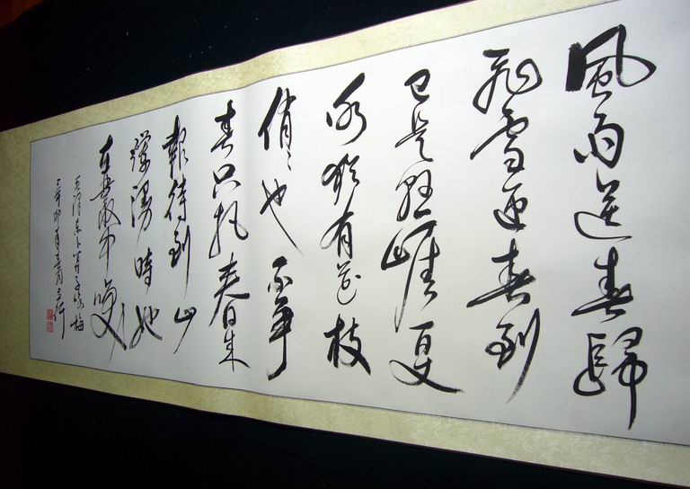 横幅字画作品装裱成裱杆的效果