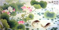 小六尺荷花九鱼图