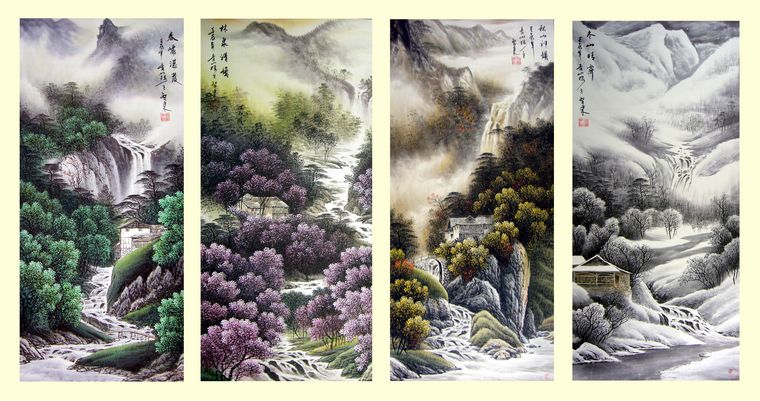 春夏秋冬山水画四条屏