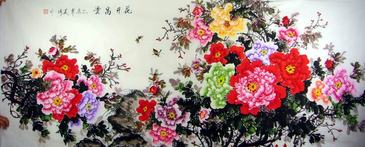 第一字画网的八尺写意牡丹,这幅小八尺的牡丹作品画风温馨、栩栩如生,牡丹寓意着富贵吉祥,作品上又写着花开富贵四个字,挂在家里客厅或是送人都是非常不错的选择,如果放在画廊出售,王美琦老师此幅八尺写意牡丹的标价在1800元左右。