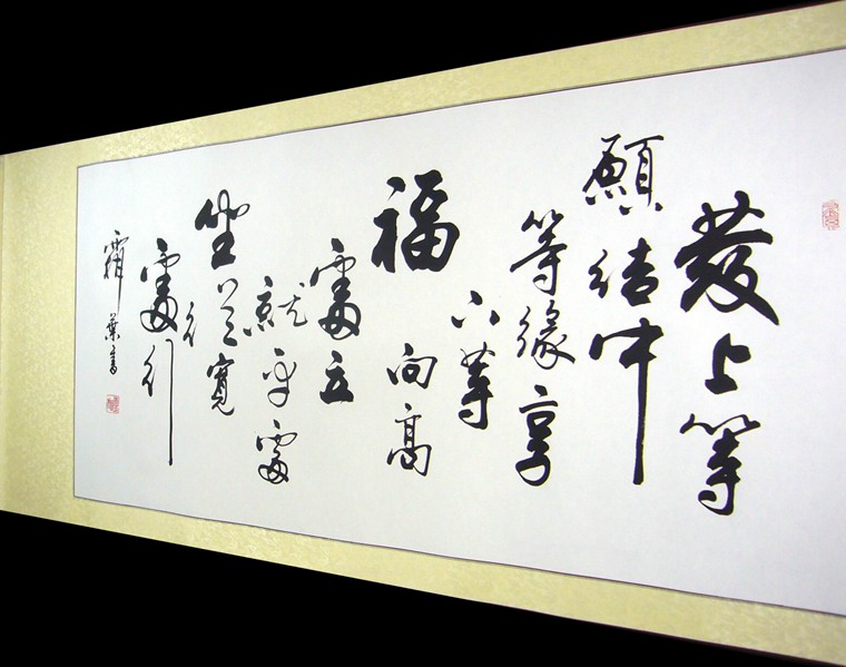 横幅字画作品装裱成裱杆的效果