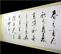第一字画网的书法海纳百川,适合挂在公司的办公室等场合,这幅书法海纳百川装裱后长度约在1.8米左右,作品清秀洒脱,如果放在画廊出售,甘正砚老师此幅书法海纳百川的标价大约在1500元左右。