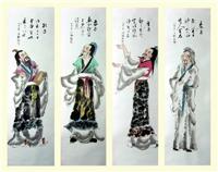 第一字画网的四条屏梅兰竹菊,这套四尺对开的梅兰竹菊套画装裱后长1.8米左右,共四幅组成,是一套非常清新的作品,同时画面上的侍女和梅兰竹菊的风格相得益彰,十分雅致。挂在家里客厅或是公司的会客室都是不错的选择,亦可用作送礼等场合,如果放在画廊出售,韩梅老师此套四条屏梅兰竹菊的标价在2500元左右。