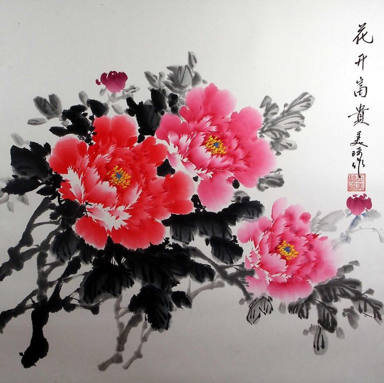 第一字画网的斗方牡丹,这幅四尺斗方牡丹画裱完后尺寸近0.8米见方,是一副水准上佳的作品,作品画风细腻、栩栩如生,牡丹寓意着富贵吉祥,作品上又写着花开富贵四个字,挂在家里客厅是不错的选择,如果放在画廊出售,美琦老师此副四尺斗方水墨牡丹裱完后的标价在800元左右。