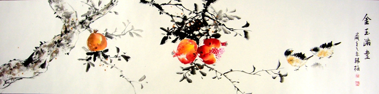 【尺寸】:四尺对开国画石榴图