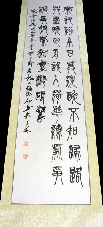 第一字画网李清照如梦令书法,适合挂在公司办公室或家里书房,这幅四尺对开书法是当代书法家张纯启老师的作品,装裱后长度约在1.8米左右,如果放在画廊出售,张纯启老师此幅书法作品李清照如梦令标价大约在5000元左右。