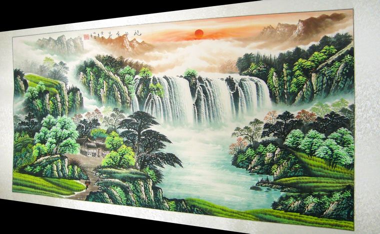 第一字画网的六尺山水画作品,是幅适合挂家里客厅的画。六尺山水画裱完后尺寸近2.2左右,是一幅意境生动的六尺山水作品,作品山水交汇,是副颇具水准的山水佳作。适合挂在家里客厅或公司会议室的背景墙,挂画的墙面长度在4-5挂这幅作品较为适合。如果放在画廊出售,刘淋老师此幅六尺山水画装裱完后的标价在4000元左右。
