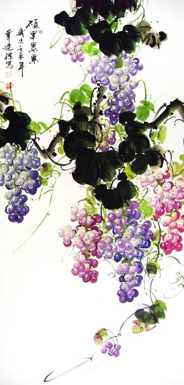 • 产品简介: 写意画葡萄,老画家覃连杰四尺竖幅作品,已装裱成卷轴。