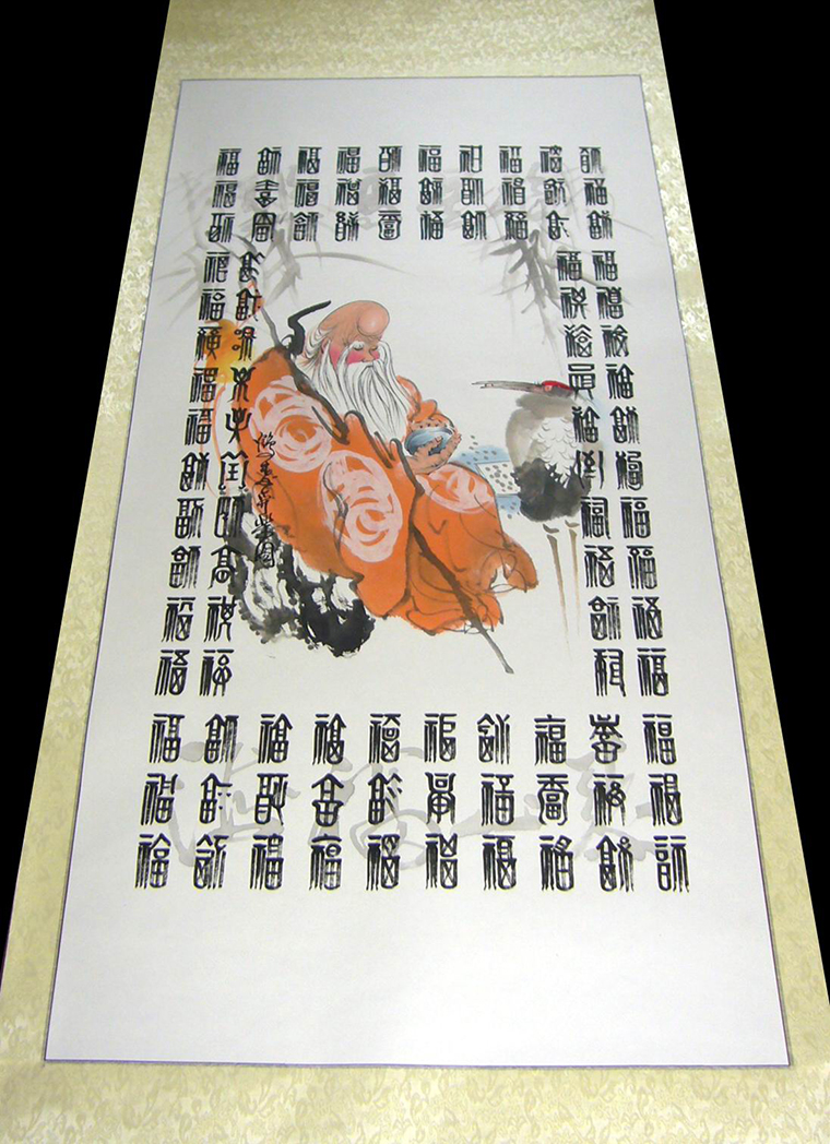 竖幅字画作品装裱成轴的效果(方便直接悬挂)