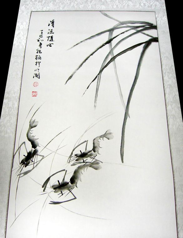 2)写意画虾趣图