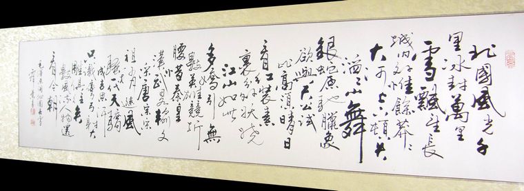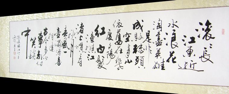第一字画网的励志名言书法作品,适合作为挂在家里客厅,或是挂在公司的办公室。这幅三国演义开篇词书法作品的笔法相当老练,装裱后长度约在1.8米左右,水准出色,如果放在画廊或拍卖行出售,此幅书法作品的标价大约在2500元左右。李正枢老师,字霜叶,云南的老书法家,擅长行楷,几十年的书法功力,功力深厚。李老师四尺对开的书法在云南的艺术品拍卖行已经是2500元起拍价了,光看字的水准就知道了。