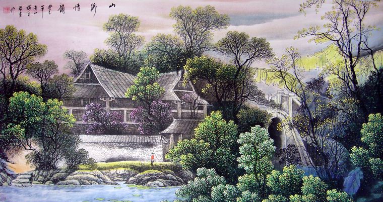 第一字画网的国画乡村山水,这幅六尺的作品是刘智东老师的新作,通过写实的风格将一派乡村山水生动展现在画面中,小桥流水人家使画面充满着生机。如果放在画廊出售,刘智东老师此幅六尺名家风水画的标价起码在7500元左右。
