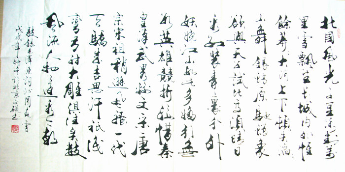 • 产品简介: 沁园春雪四尺书法,广西书法家甘正砚四尺作品,未装裱。