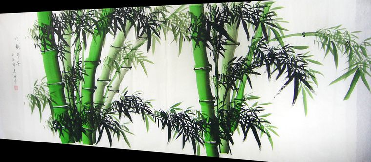 竹子,劲节有力,笔笔传神,在国画中,自古就有梅,竹,菊,兰岁寒四友之称。而竹是超凡脱俗、清新高雅的象征。