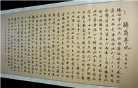 第一字画网的四尺道德经书法作品,是四尺的书法作品,这幅毛泽东诗词沁园春雪书法非常适合挂在客厅或书房,气派非凡,装裱后尺寸近1.8米长,如果放在画廊出售,山东书法家俊林老师这幅四尺道德经书法作品的标价起码在800元左右。