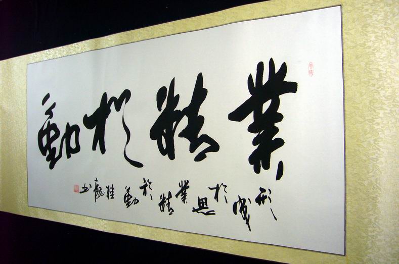 第一字画网的业精于勤书法,适合挂在客厅或是会客室,这幅业精于勤书法是湖北书法家郁桂龙老师的作品,装裱后长度约在1.8米左右,作品笔法老练,如果放在画廊出售,郁桂龙老师此幅业精于勤书法作品的标价大约在1200元左右。
