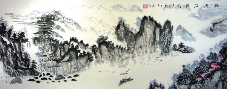 此幅作品气度恢弘、精妙传神,儒商雅士镇宅纳福之妙品也。作品已经完成装裱长度达到2.2米,,是张新鸣老师的山水作品系列,水准出色,性价比很高。如果放在画廊出售,张新鸣老师此幅山水画作品在画廊的标价在3000元左右。