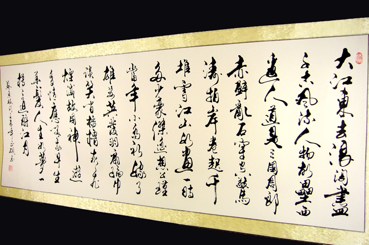 横幅字画作品装裱成裱杆的效果