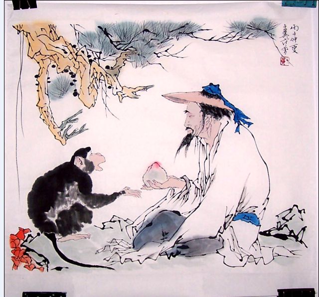 • 产品简介: 人物画献桃,仿范曾作品