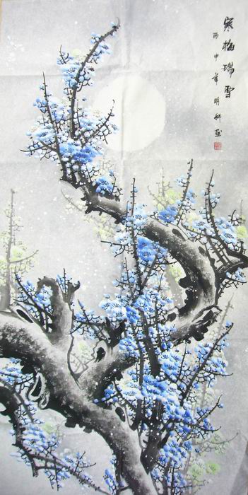 第一字画网的五福临门梅花图,数量仅一幅,是幅适合客厅或居室挂的梅花作品,是一幅性价比很高的全手绘四尺梅花作品,如果放在画廊出售,广西画家明科老师此幅五福梅花图的标价大约在1500元左右。