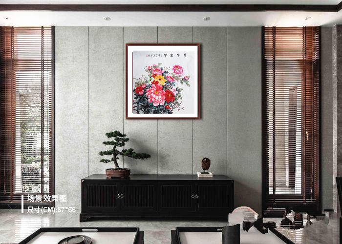 • 产品简介: 客厅字画富贵牡丹国画,牡丹国画行家沈弘文六尺斗方牡丹国画作品,未装裱。