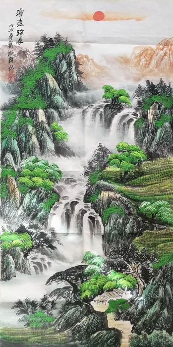 • 产品简介: 竖幅聚财山水画,刘淋老师作品。