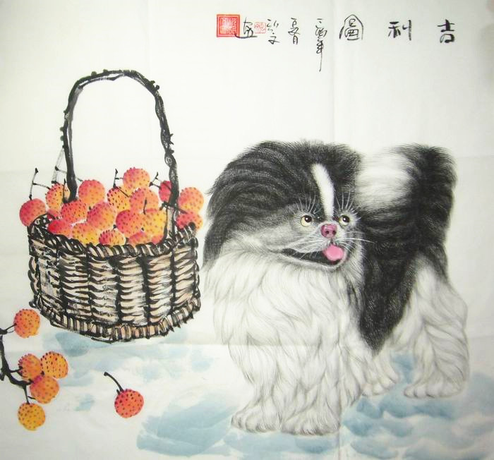 第一字画网的国画动物画荔枝画,这幅四尺斗方写意国画动物画裱完后尺寸近0.8米,是一幅水准上佳的作品,作品画风细腻、栩栩如生,荔枝象征着多子多孙,也是健康长寿的象征希望、小狗又叫旺财,两者结合起来寓意健康长寿、富贵吉祥。挂在家里客厅、玄关或是送人都是非常不错的选择,如果放在画廊出售,沈弘文老师此幅写意国画动物画的标价在1500元左右。此幅优秀画动物画荔枝图作品,仅售580元,从作品的画面的细节处可以看出弘文老师的画功十分了得,适合挂在家里的客厅,喜气吉祥、富贵满堂。