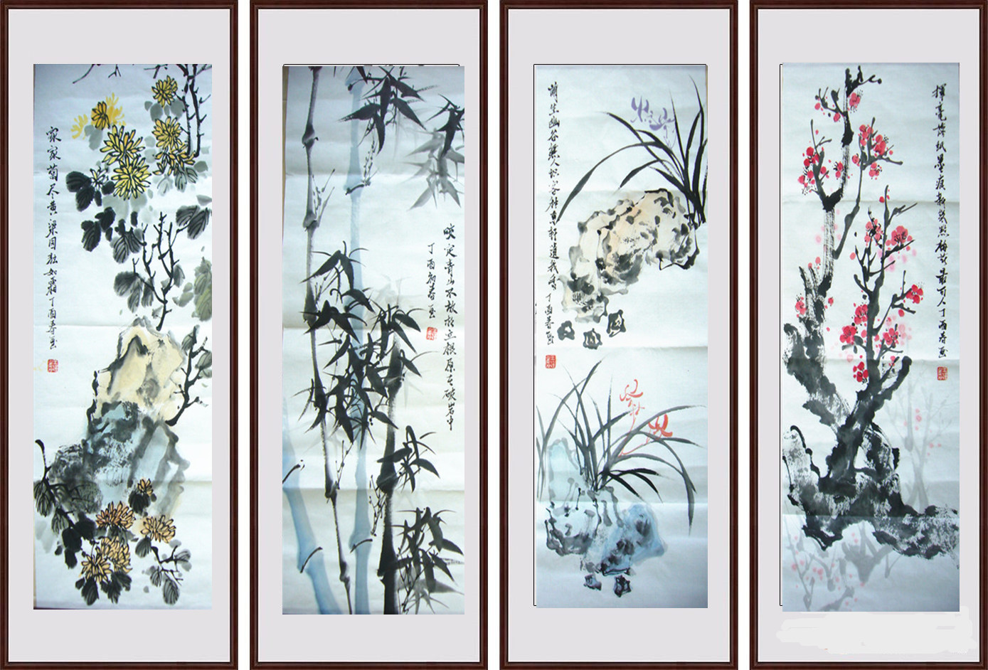 【尺寸】国画梅兰竹菊四君子 共四幅组成