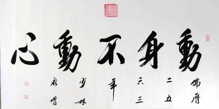 • 产品简介: 动身不动心(此作品询价),释永增大师四尺书法。