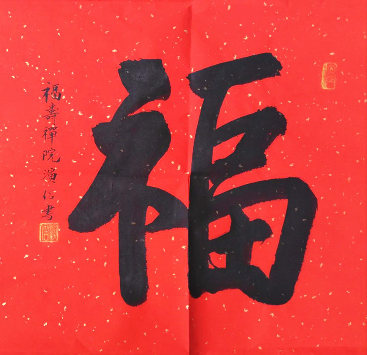 • 产品简介: 行书书法福字,喜气迎门,招财纳福,福寿寺住持释演信法师书法作品。
