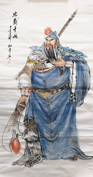 第一字画网的四尺关公中堂画+对联,数量只有唯一的一幅,售完即止。作品画法精妙,栩栩如生,是人物画中难得一见的关公作品,关公作品的神采和细节处画功细腻,是人物画的佳作,装裱成裱轴后可以直接悬挂,如果放在画廊出售,张松平老师此幅四尺关公画像的标价在3000元左右。
