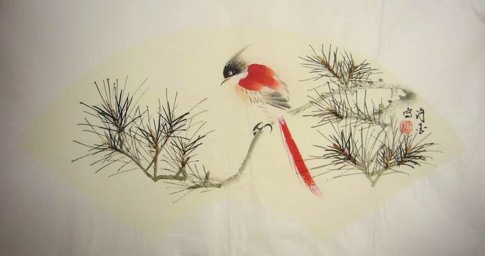 【尺寸】扇形装饰花鸟画