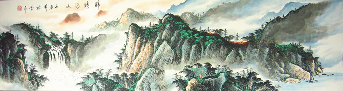 第一字画网的六尺对开客厅山水画字画,这幅国画山水黄山裱完后尺寸近2.2米左右,是一幅清新秀雅的六尺对开山水作品,作品布局颇有特色,左右逢源的瀑布、白鹤等构成了出色的风水效果,如果放在画廊出售,林云老师此幅六尺对开山水画作品的标价在1800元左右。