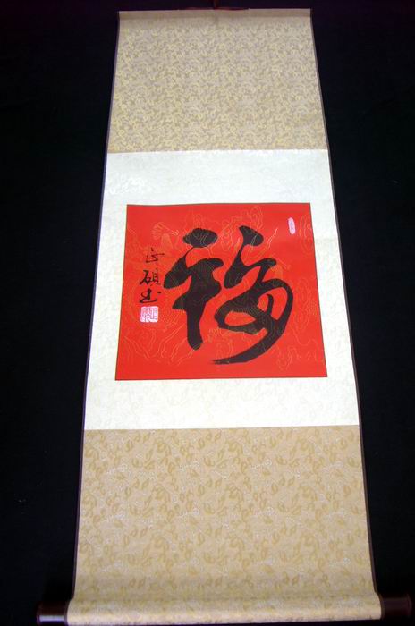 竖幅字画作品装裱成轴的效果(方便直接悬挂)