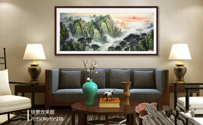 第一字画网的国画泰山日出 《泰山旭日》,小六尺泰山画裱完后尺寸近2.2米左右,是一幅大气磅礴的小六尺山水,作品意境生动、山水交汇,清新秀雅,布局合理,视觉效果上佳,看作品的气势、云层和山脉的细节,就能看出老师的深厚画功,画面上的红日寓意着鸿运高照,如果放在画廊出售,刘淋老师此幅山水画泰山日出的标价在5000元左右,作品的气势和画功都是一流的,适合挂在客厅、或公司的会议室等场合。