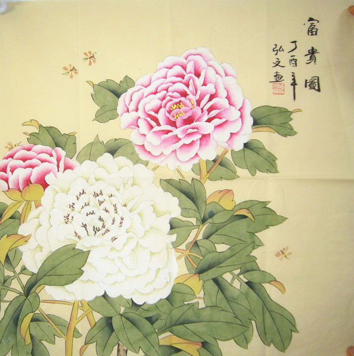 第一字画网的斗方富贵牡丹画,这幅四尺斗方的工笔装饰画牡丹画作品装裱后尺寸为0.6米见方左右,是一幅十分温馨祥和的作品,作品画风细腻、十分雅致,寓意为和气生财。挂在家里卧室或书房都是非常不错的选择,亦可挂在会客室等不同场合,如果放在画廊出售,沈弘文老师此幅工笔牡丹图卧室玄关画作品的标价在1700元左右。