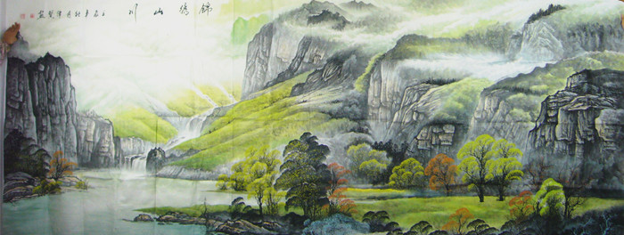 第一字画网的巨幅山水画佳作,这幅巨幅山水画作品画芯尺寸就达到3.6米左右,适合作为客厅酒店高档国画,是一幅气势磅礴的大丈二山水作品,作品清新秀雅,朝气蓬勃,这幅山水美景视觉效果上佳,如果放在画廊出售,刘伟贤老师此幅客厅酒店高档国画的标价在9800元左右。