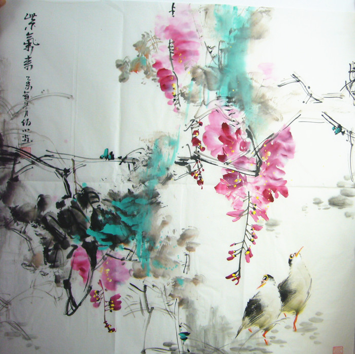• 产品简介: 紫气东来花鸟装饰画,谭佰川老师作品。