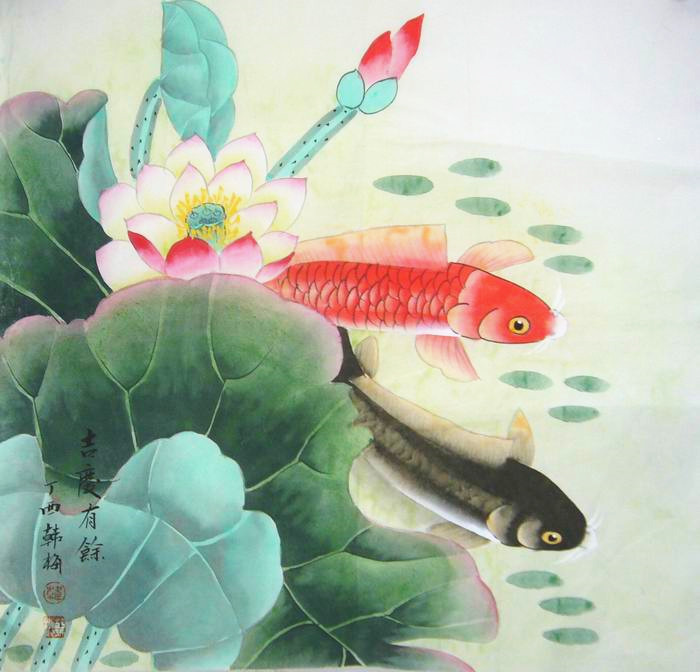 第一字画网的三尺斗方荷花锦鲤图 ,作品适合挂在餐厅,也可以挂书房、卧室或是玄关过道处,是一幅很有意境的作品。三尺斗方的荷花图并不多见,画的精彩的就更少了,这幅作品从构图和层次等细节处都可以看出是一幅用心精彩之作,寓意吉庆有余,如果放在画廊出售,韩梅老师此幅斗方荷花锦鲤图 的价格大约在1500元左右。